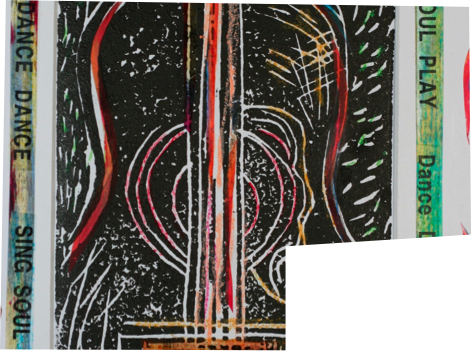 9.Traditional printmaking techniques. Includes: linocut, monoprint, basic stencils, collagraghs, woodcuts, and emboss.